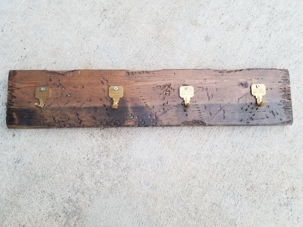 Repurposed old keys into an entryway Hanging Key holder. Also works great in a bathroom to hang towels or a kitchen to hang mugs, utensils, etc. Mounting brackets included. Dimensions 20"L x 4"W Price is firm. Serious buyers only. Thanks for viewing! Please check out my FB page FB.me/craftsbyme123