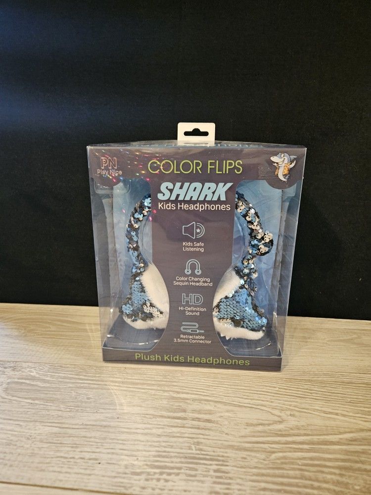 Color Flips Sequin Blue Plush Shark Color Changing Headband New In Box.