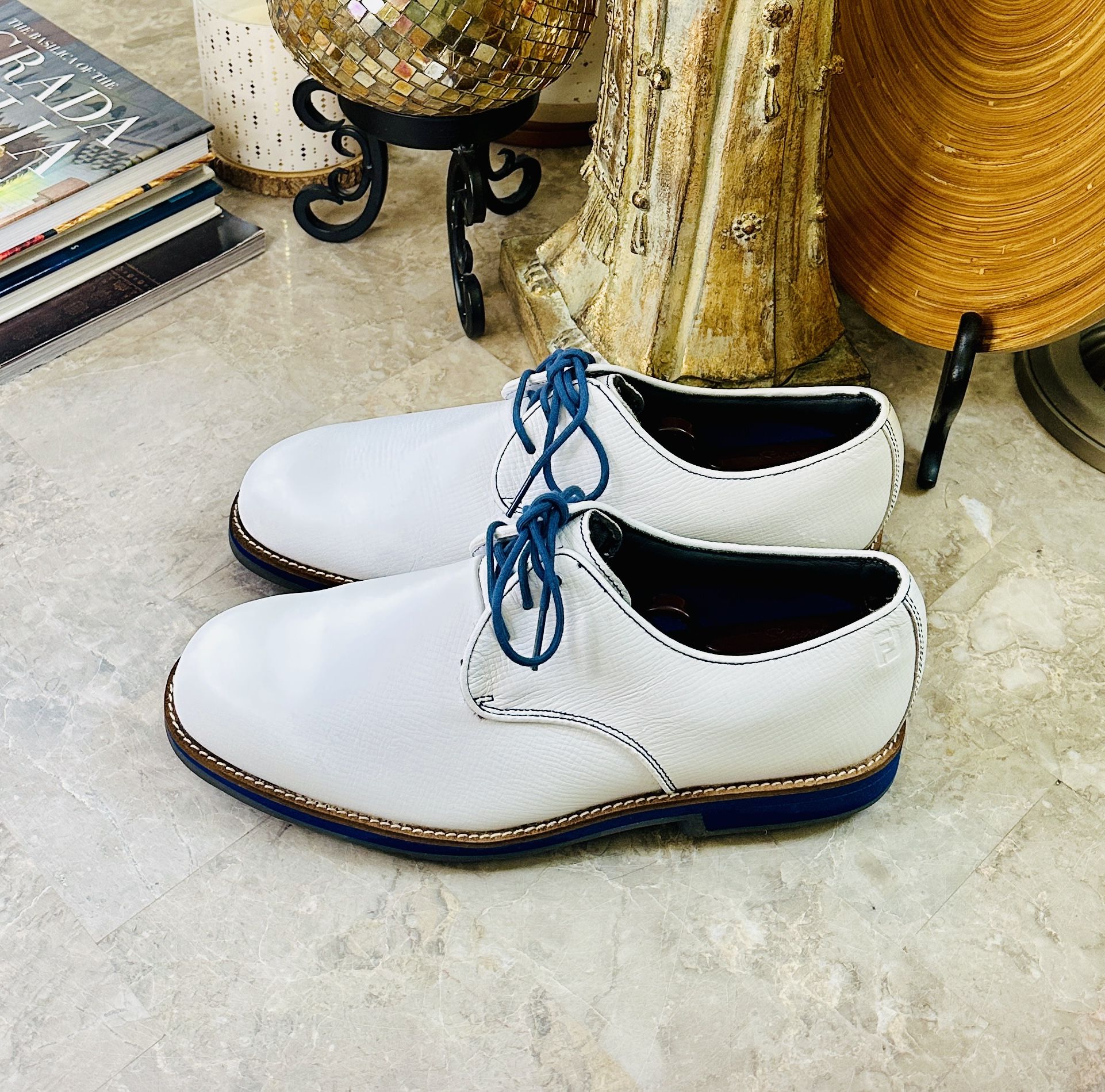 Men’s FootJoy City 56419 Spike Golf Shoes Size 8.5W White/Blue EUC!