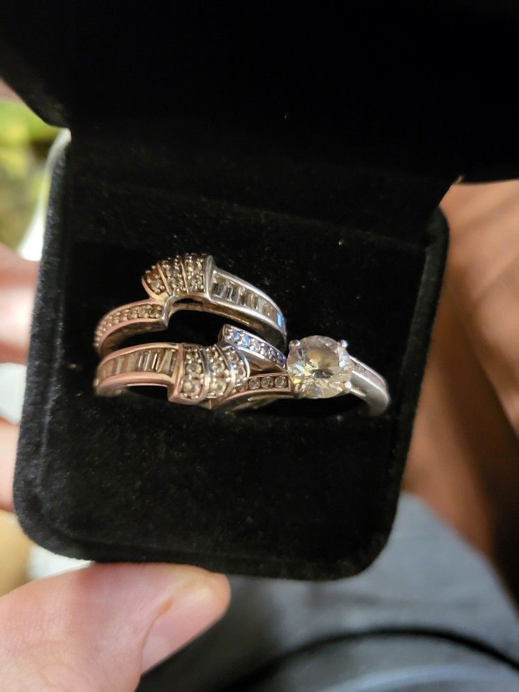 Sterling Silver And CZ Bridal Set/Engagement Ring And Inhancer Size 8 Stunning