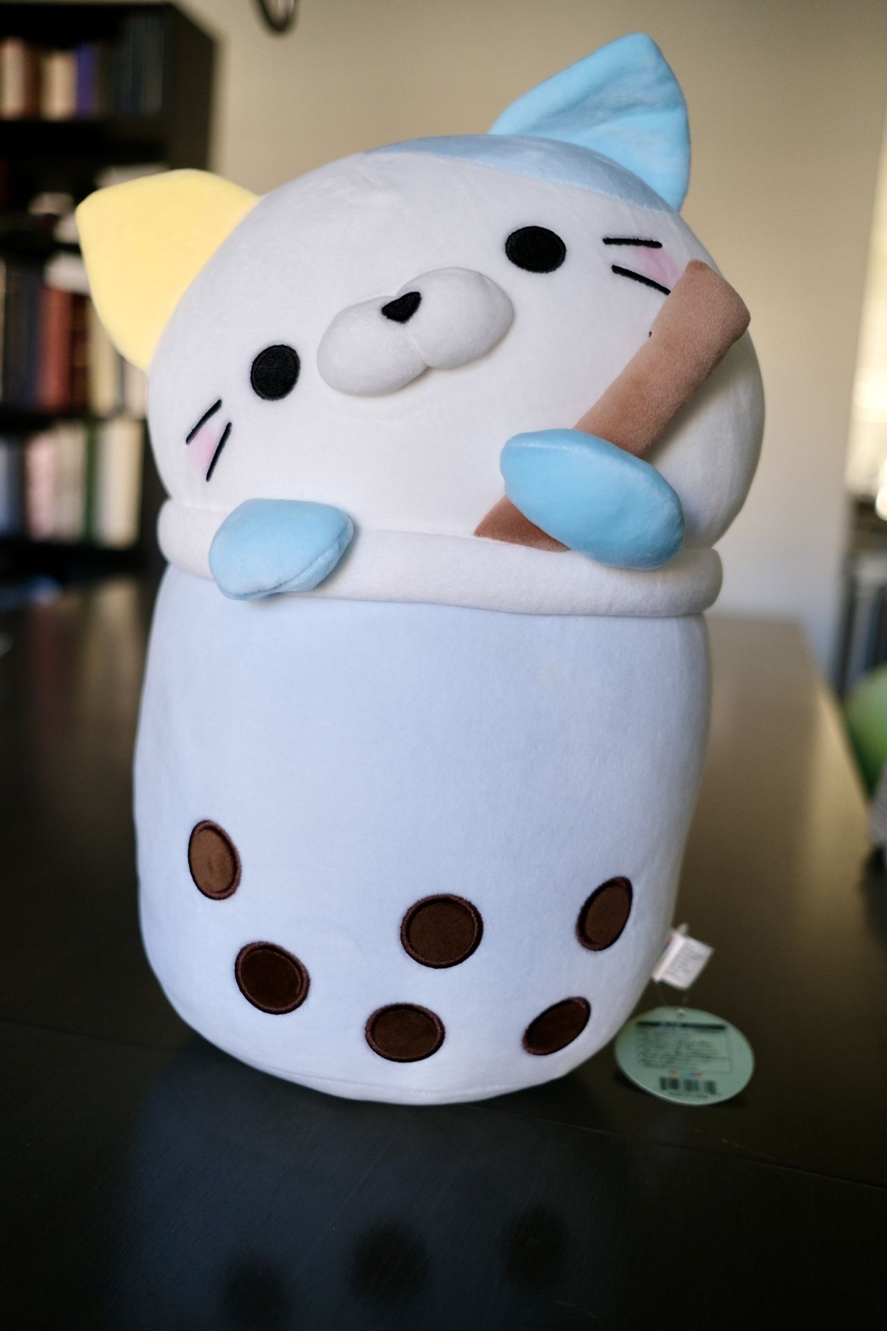 Original Takashoji Boba Cat (Blue And White) Plushie! NEW with tag still on it. Medium size.