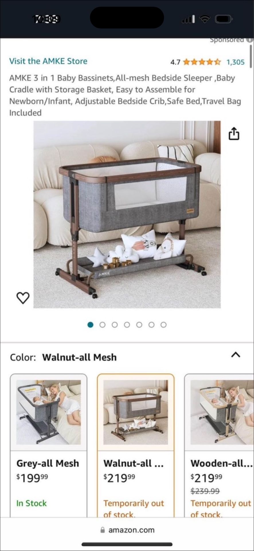 AMKE 3 in 1 Baby Bassinets, All-mesh Bedside Sleeper, Baby Cradle with Storage Basket, Easy to Assemble for Newborn/Infant, Adjustable Bedside Crib,Safe Bed, Travel Bag Included Brand new never used