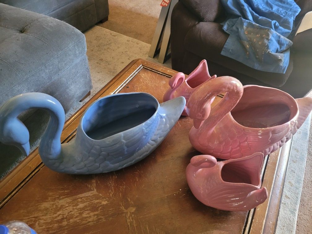 4 Ceramic Geese 2 Adults And 2 Smaller Ones