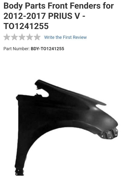 2012 Toyota Prius V Right Hand Side Passenger Fender Did not use. Found same part painted vehicle color