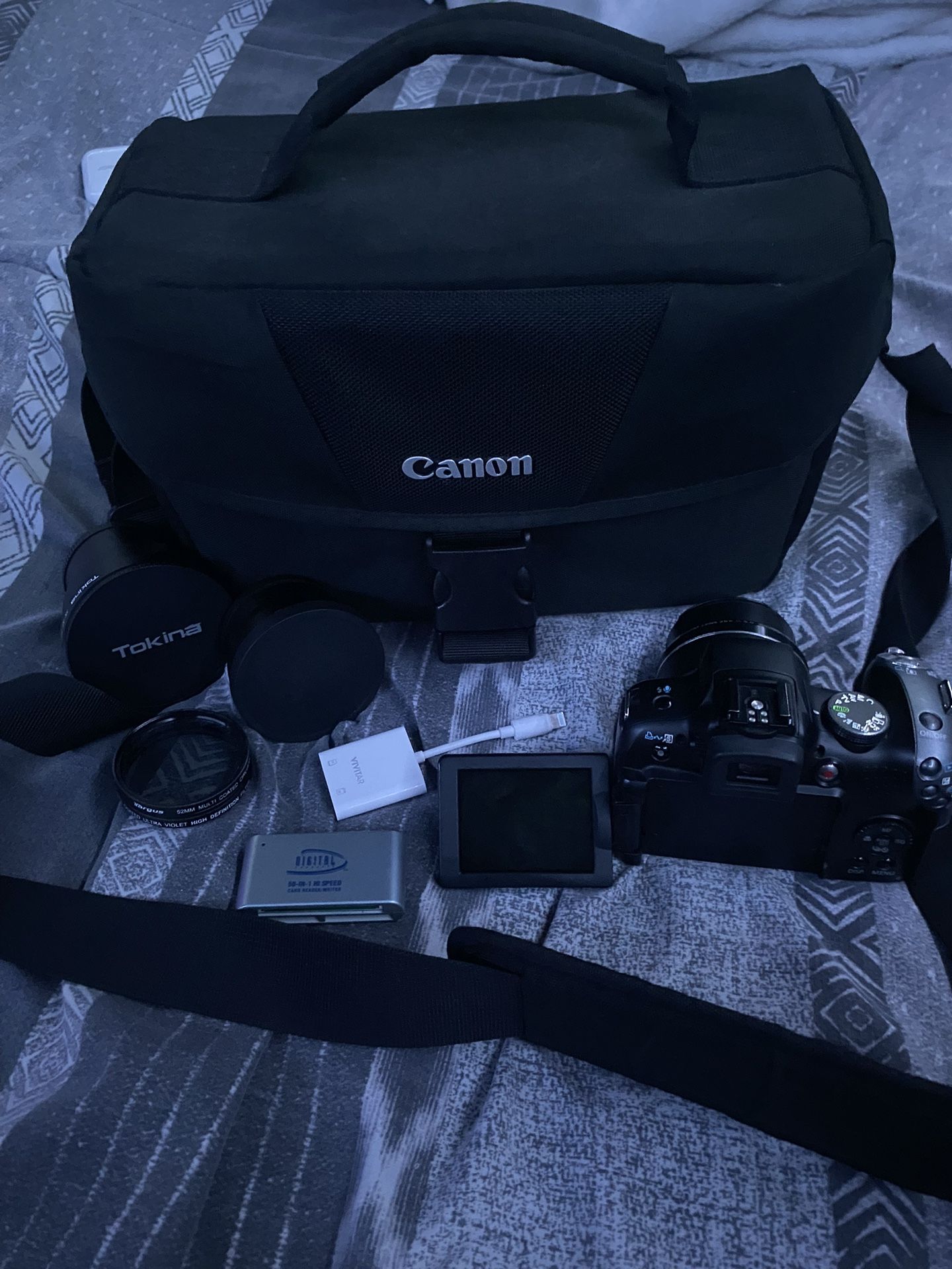 -Canon Powershot SX10IS -Canon EOS Shoulder Bag -SD Card Camera Reader -2 camera filters -Tokina 3x Af High Definition Digital Lens -2x Telephoto Lens Japan