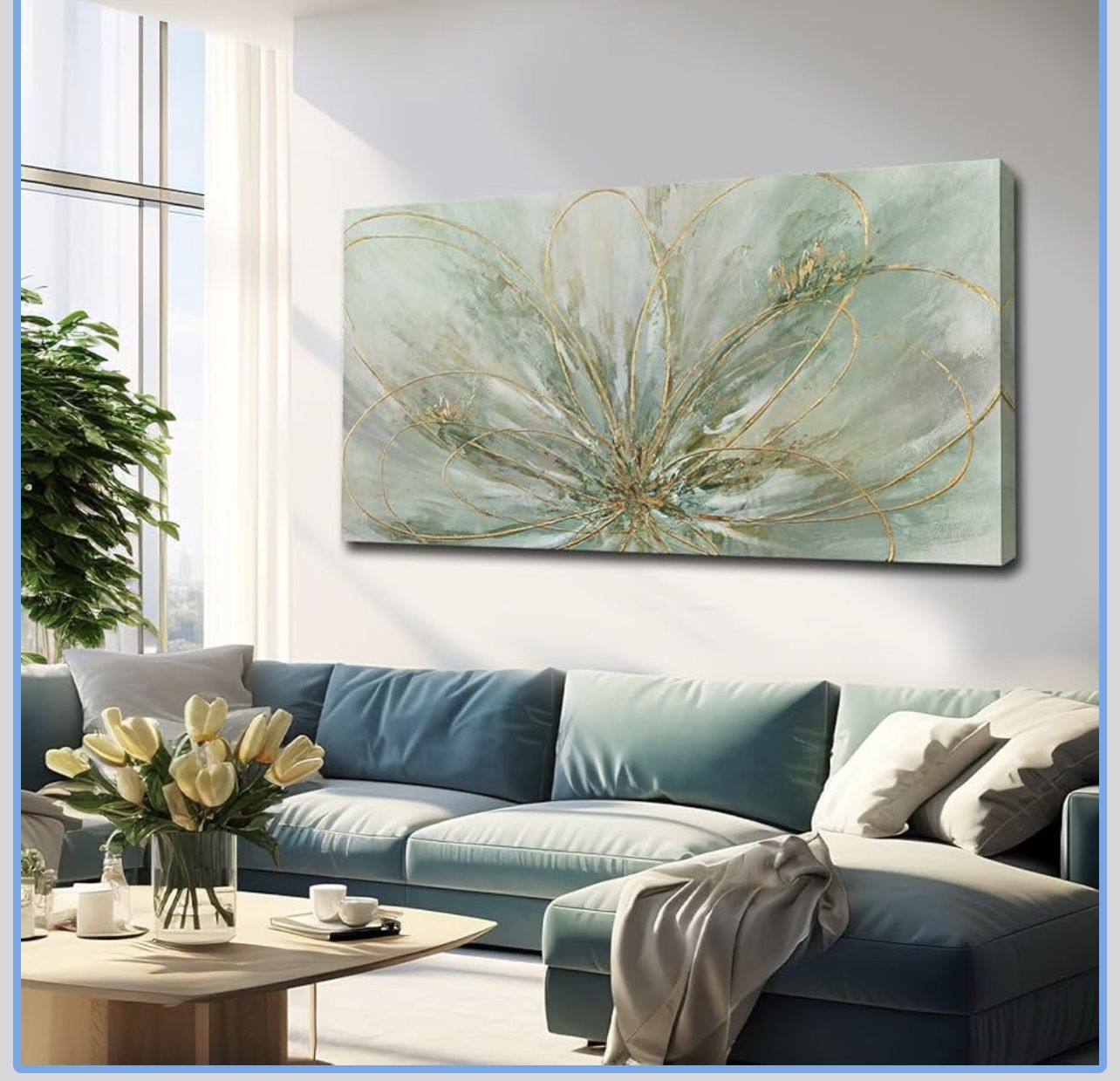 Green Flower Canvas Wall Art, Modern Paintings with Gold Foil, Abstract Nature Wall Decor for Home, Office, Living Room, Bedroom, 24 x 48 inches Brand new I can do delivery with an extra gas I invite you to see the entire list of items I sell. Hablo Español