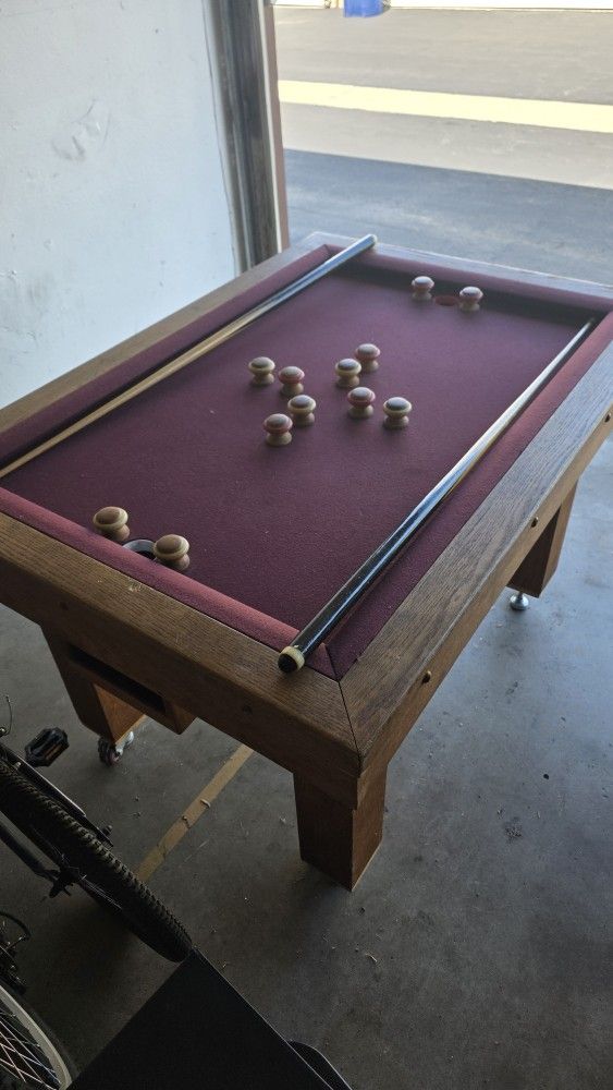 I loosen the legs moving but just need to tighten them. All bolts are there. Very heavy and need atleast two people and a truck to haul it. In the garage. With some paint job, it should be good as new!