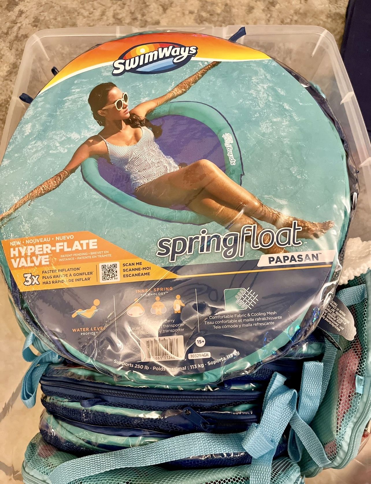 SwimWays Spring Float Papasan Inflatable Pool Lounger with Hyper-Flate