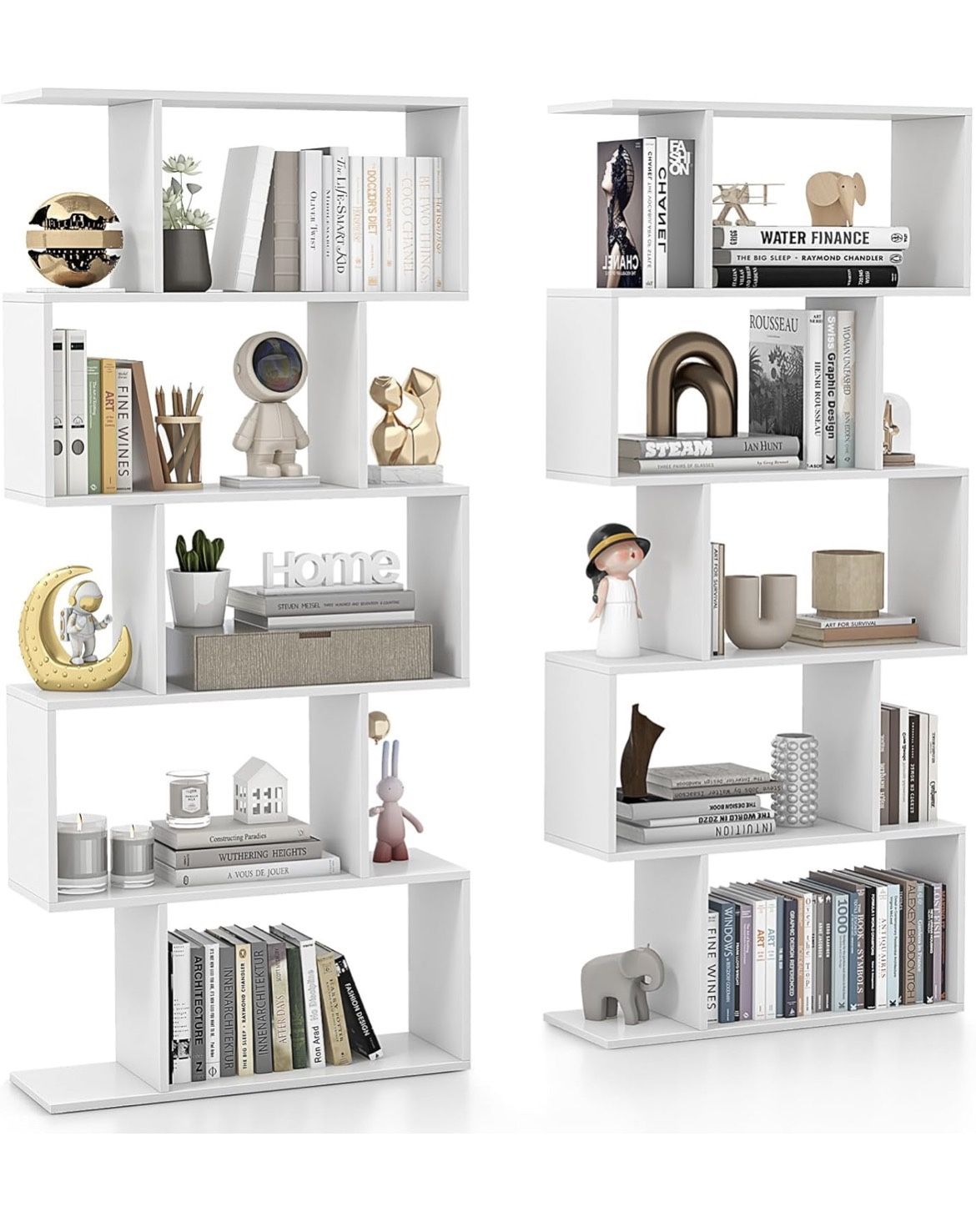 5-Tier Bookshelf Set of 2, S-Shaped Book Case with Anti-Toppling Device, Freestanding Home Organizer Room Divider Display Shelf, Open Storage Rack f... See more