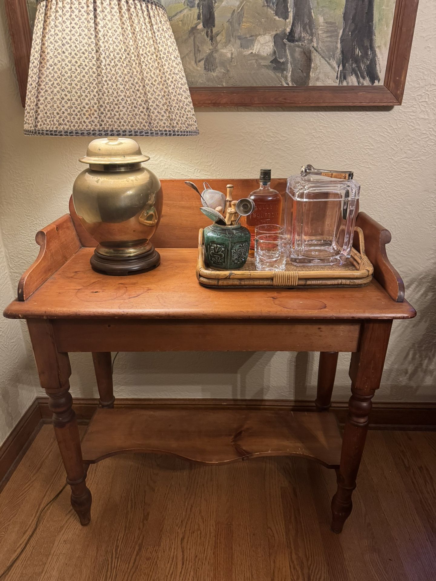 Beautiful antique pine console table with galleried top. Early American piece from about 1850. Would have been painted originally. Pine top, might be hardwood bottom. Shelf below. Wonderful piece of history for an entryway, or used as a sideboard, sofa table, or bar. Beautiful patina and in good condition. Check out my other listings for more antiques, and be sure to follow my profile for the latest arrivals. Curbside delivery available within Seattle for a fee. Please inquire for details. ๐๐ฆ If this listing is up, itโs available. Please message with your pickup availability or any questions! All sales are final. Items are sold as-is and may include scuffs, scrapes, wear and imperfections, consistent with their age and character. Keywords: Anthropologie, Pottery Barn, Restoration Hardware, English, French, Italian, Scandinavian, Victorian, Farmhouse, Farm House, Cottage, Primitive, Rustic, Washstand, Wash Stand