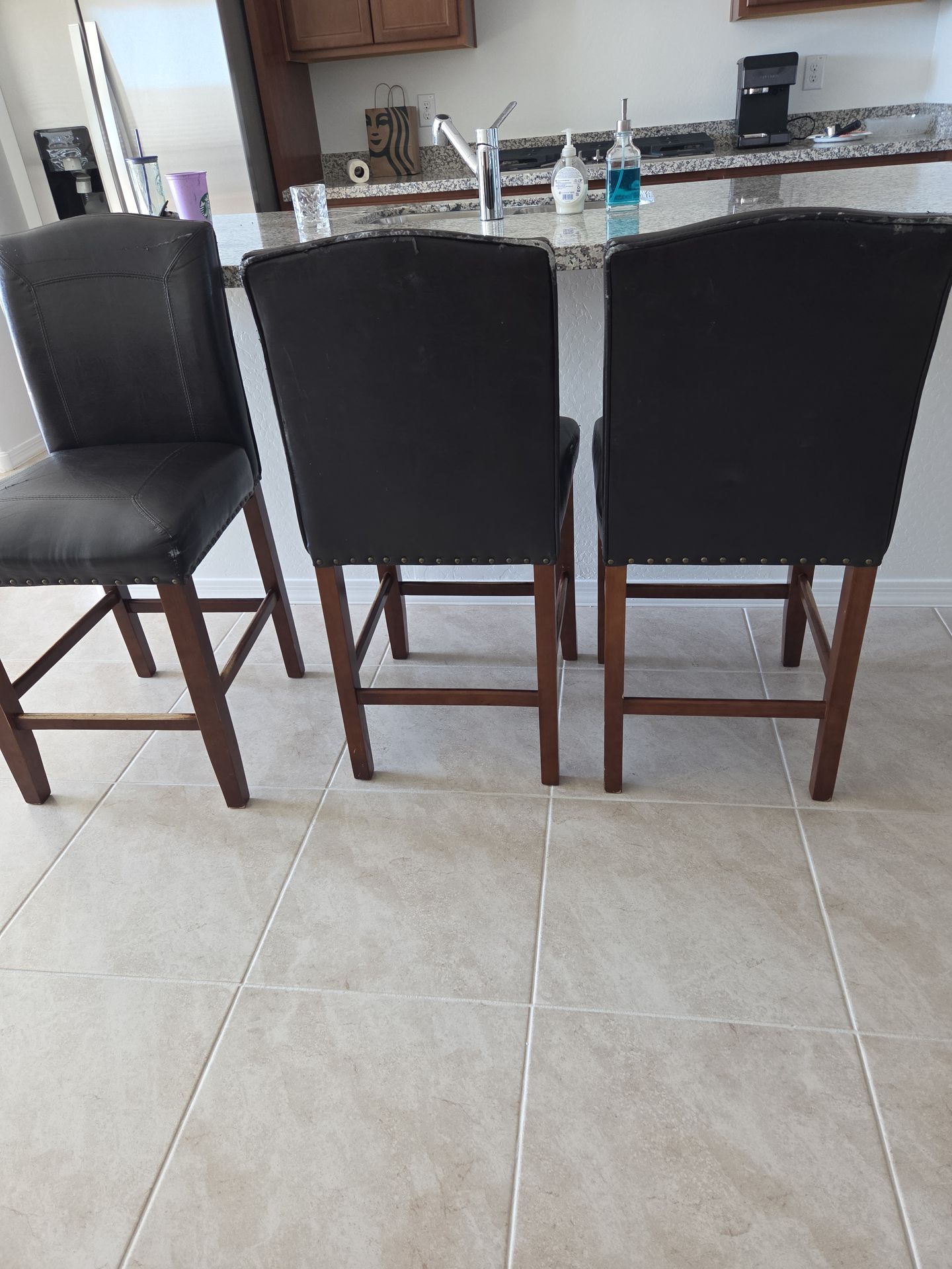 3 expresso stools a little small peeling no holes or tires. All 3 must go together will be having 6 matching chairs soon Not included in today's price $125.00 text me (contact info removed) location Buckeye