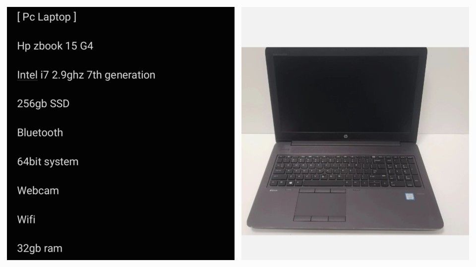 [ Pc Laptop ] Hp zbook 15 G4 Intel i7 2.9ghz 7th generation 256gb SSD Bluetooth 64bit system Webcam Wifi 32gb ram Windows 11 pro