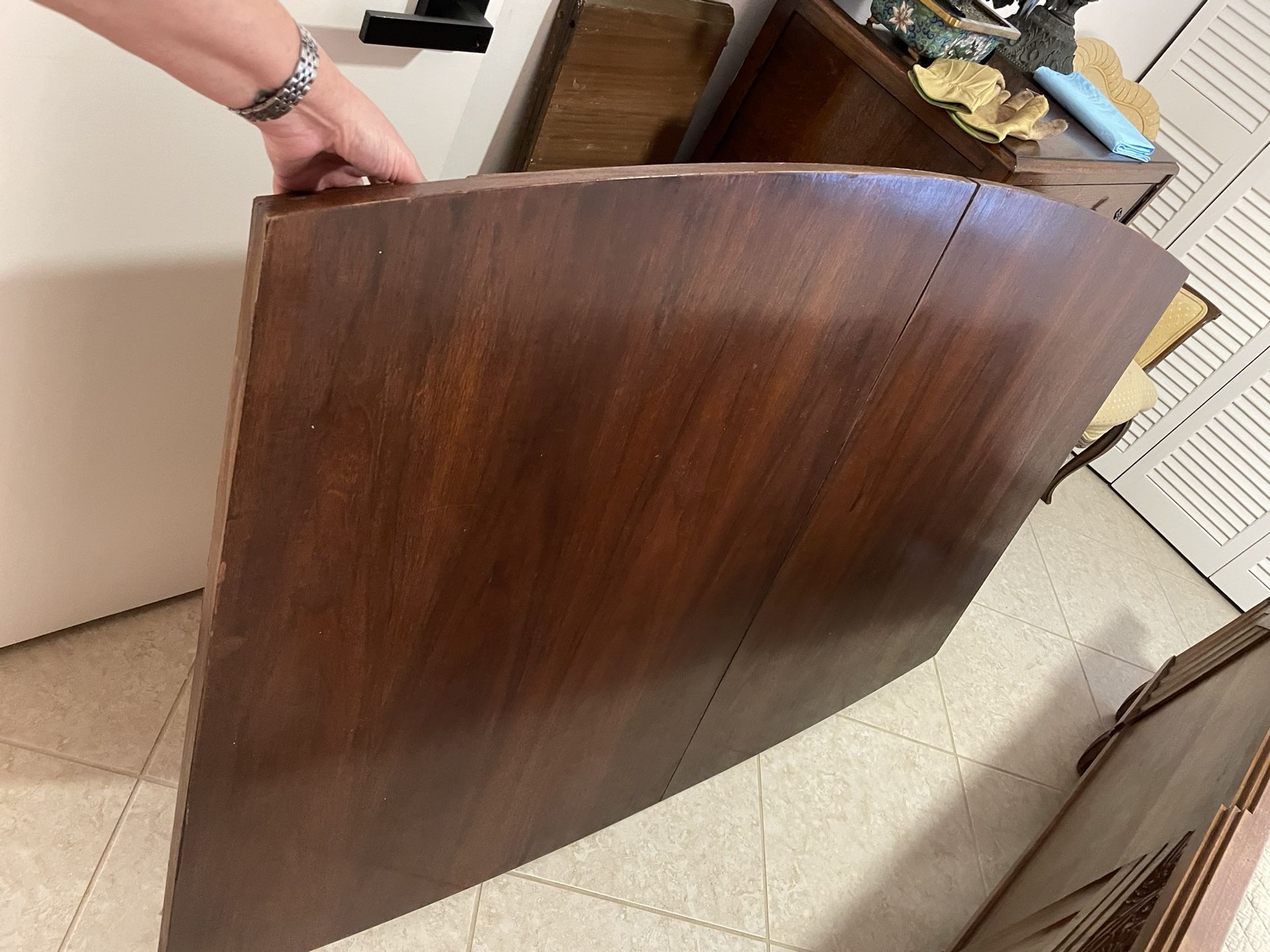 Wood mid century dining/ kitchen table with one leaf. Approx 38” x 60”