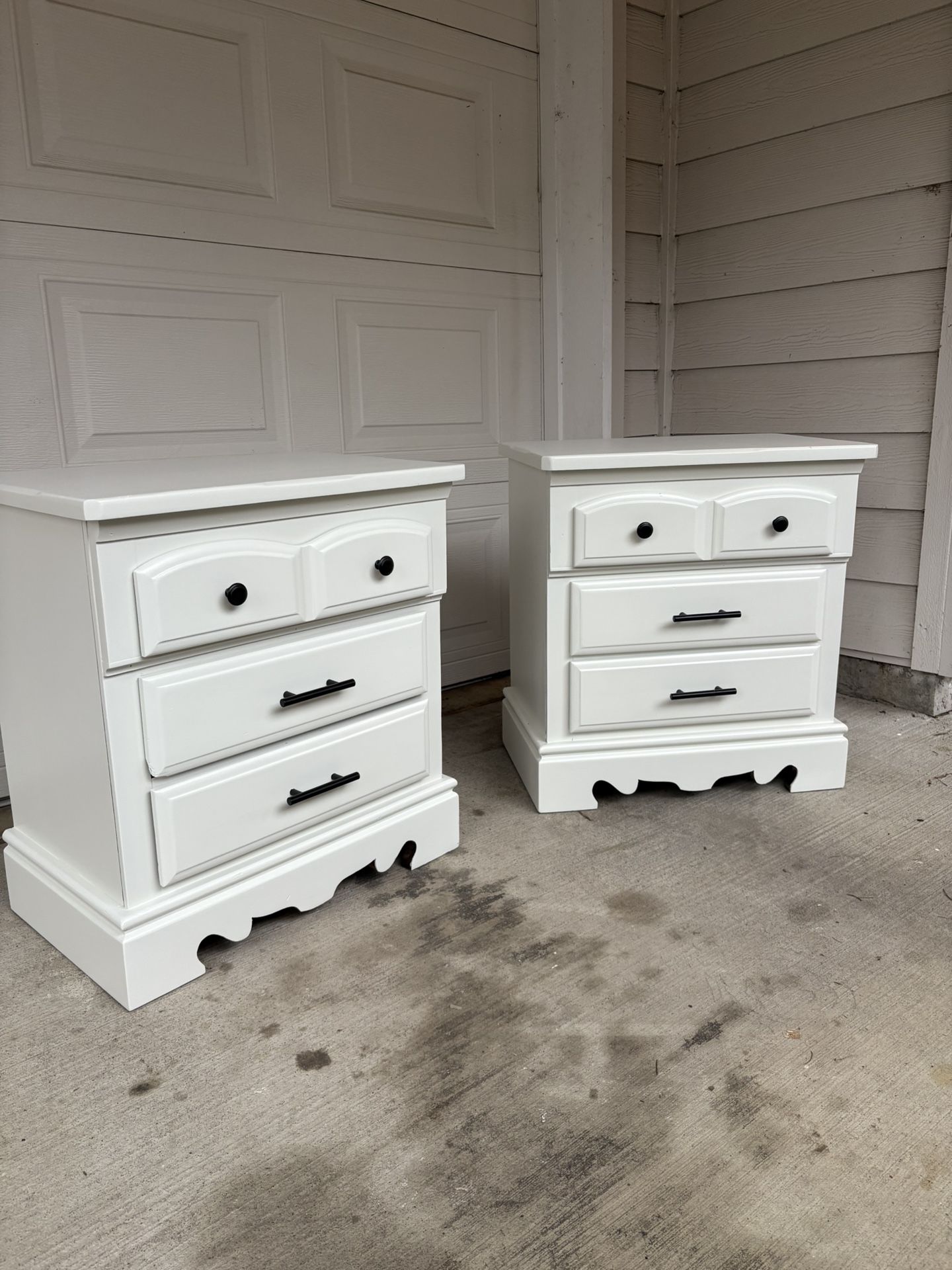 Fully refurbished solid wood matching nightstands! Brand new hardware and paint. I can deliver if reasonably close!
