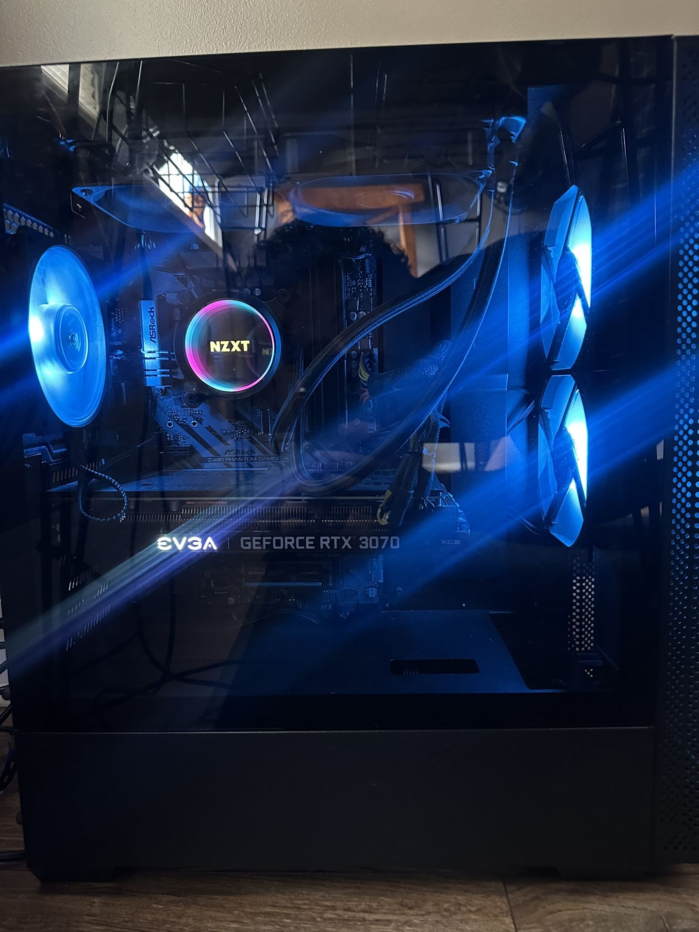 In the pictures is a list of all the specs for this pc. The original gpu was replaced with a 3070 and I added a kraken x53 liquid cooler Does come with wireless mouse, taser keyboard, and acer monitor Works fine I just don’t have the time to use it and feel bad that it just sits