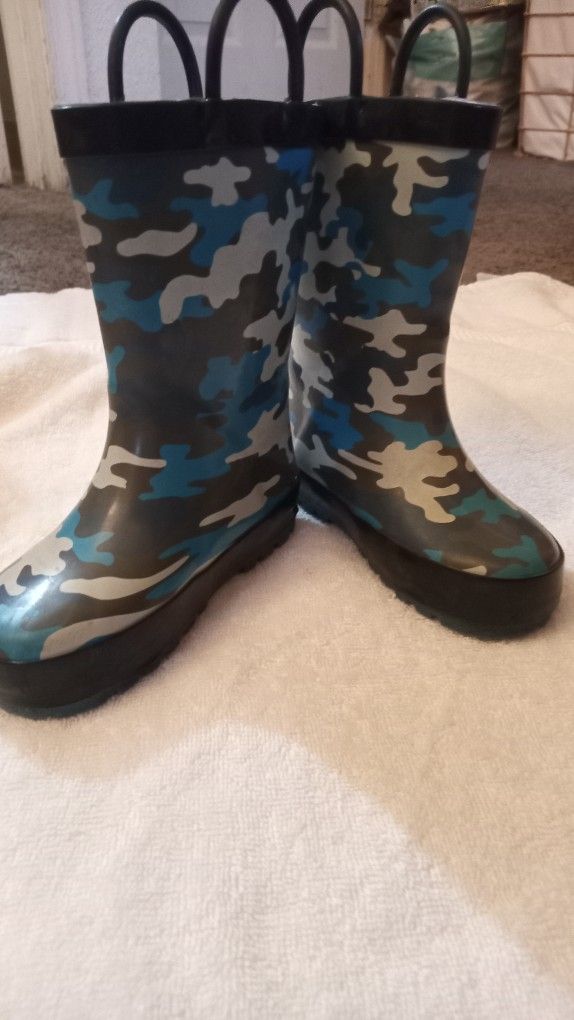 Slightly used Blue Camo Toddler Sz. 8 Rain Boots