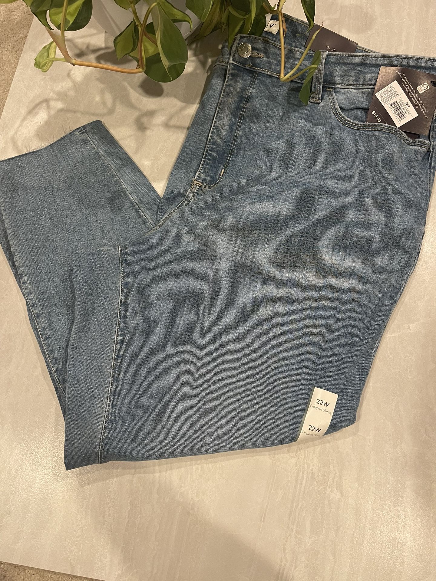 Brand new with tags Never worn Size 22w Plus size Cropped Skinny Jeans All my items come from Target liquidation Sells, I have a lot of Brand New with tags pants, jeans, sweatpants, Leggings shirts, etc. If interested please send me a message I would love to make a post for the item or check to see if I have your size and see if your interested! Every item is from Target or Amazon. Thank you for your interest. Happy Shopping!