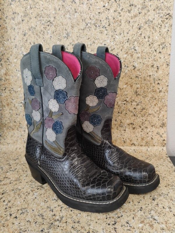 Ariat Womens Black Doll Baby Blue Suede Floral Square Toe Cowgirl Boots Size 6B