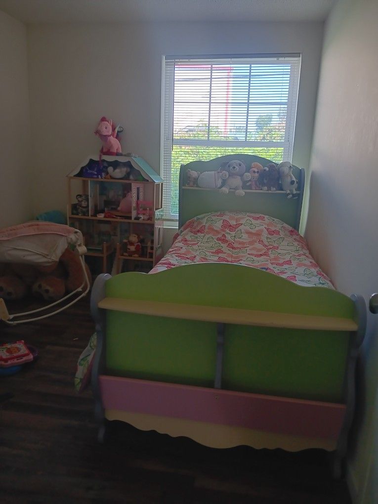 Twin Bed Includes Doll House And Girl Toys.