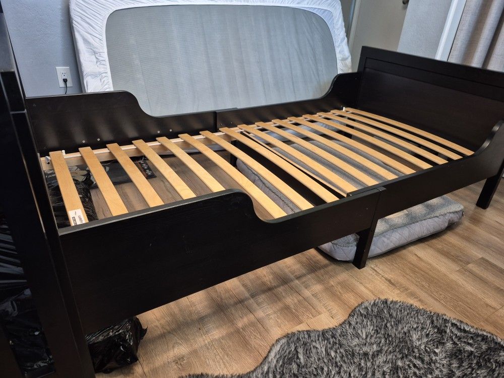 Three sizes with 3 cushion configurations - toddler to twin size. Well maintained; no scratches or gouges in wood. Support beams in good shape with no cracks.