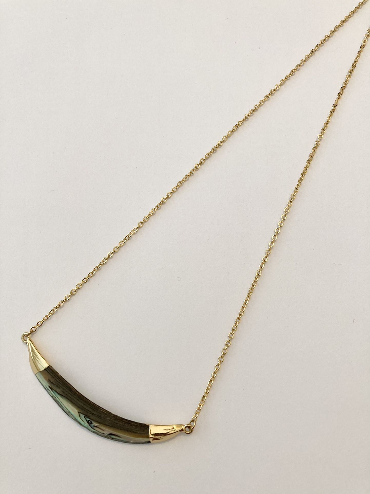 Natural abalone shell pendant necklace suspended on dainty 20β gold plated chain with 2β extender chain Shell pendant is approximately 3β long and electroplated in 24k gold So beautiful!π