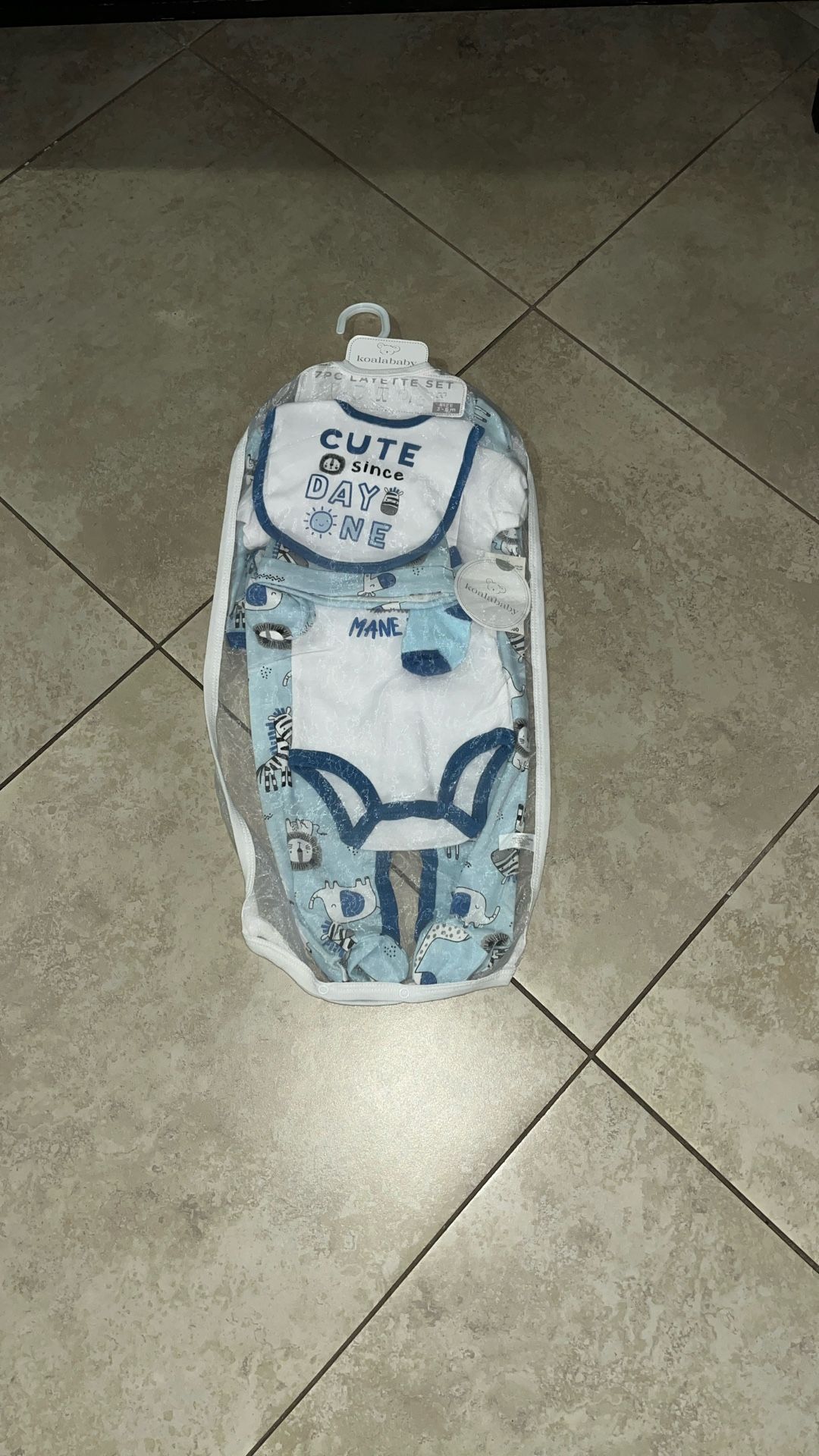 Brand new super cute Koala Baby Boy’s 7 Piece Layette Set, set includes a footed sleep & play with cute lion, zebra, and giraffe print, short sleeve onesie body suit, jogger pants, bib, beanie hat, mittens, and socks, everything your new bundle of joy needs! Comes in a see through bag that snaps at the bottom. Perfect gift for any occasion! Size 3-6 Months, $20 Check out my other posts for more cool stuff!