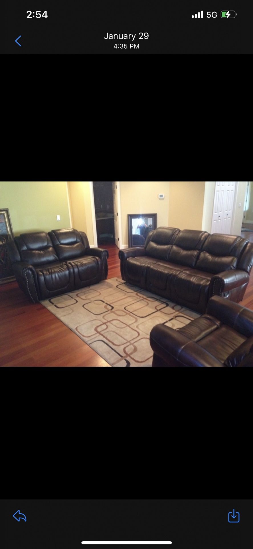 Brand new everything still in packaging this is display picture of the set Sofa and love seat and chair all included Delivery to all areas