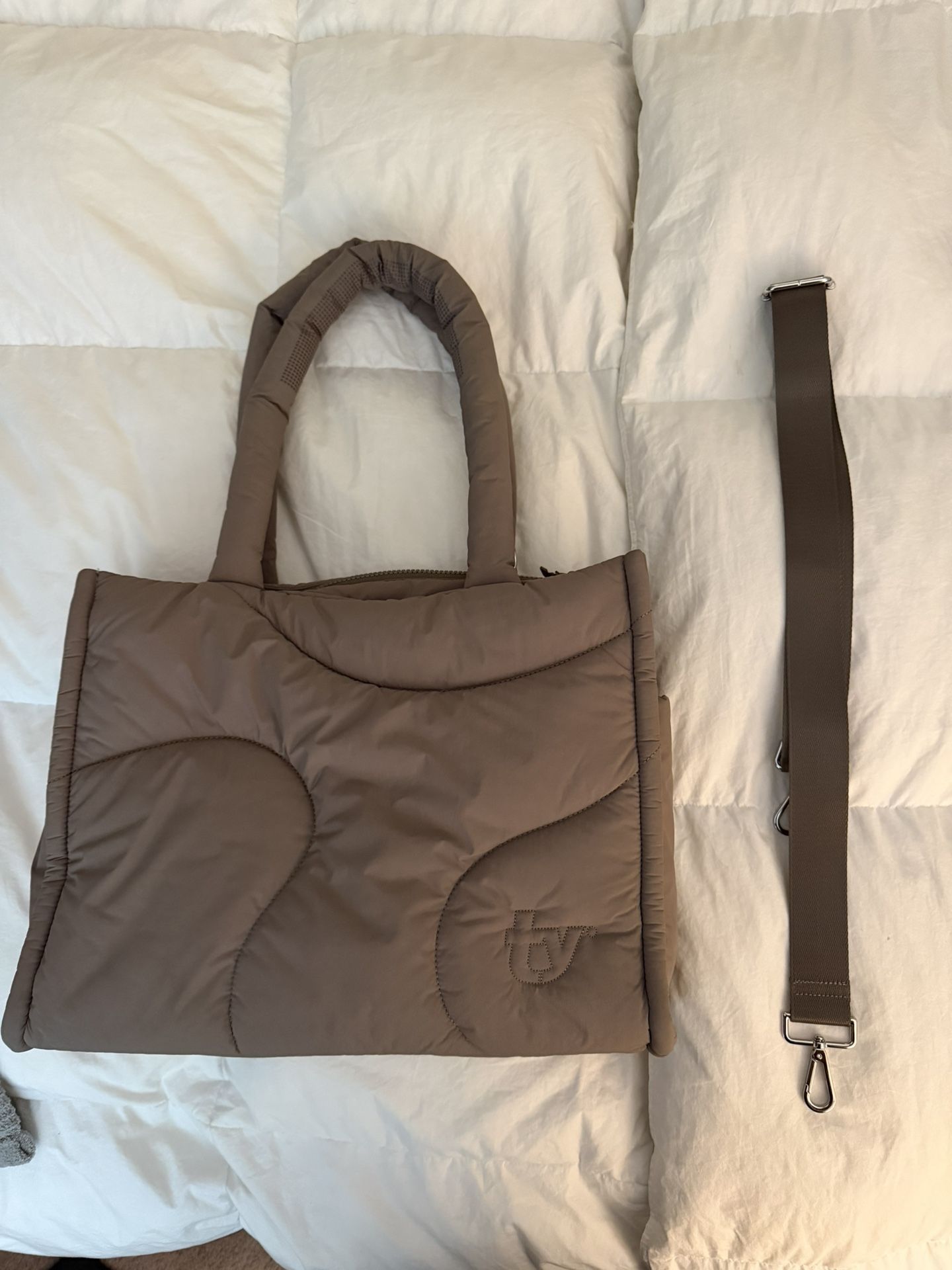 Thirty Years Drift Puffer tote in color Clay. Currently waitlisted on website. Gently used, includes long shoulder strap.