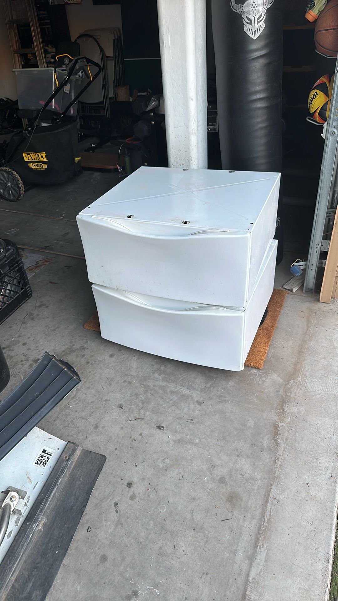 2 pedestals (with a storage compartment) for washer/dryer Only used for a couple months Selling online for 200+ each so firm on price but shoot any offers Can deliver if needed depending on location
