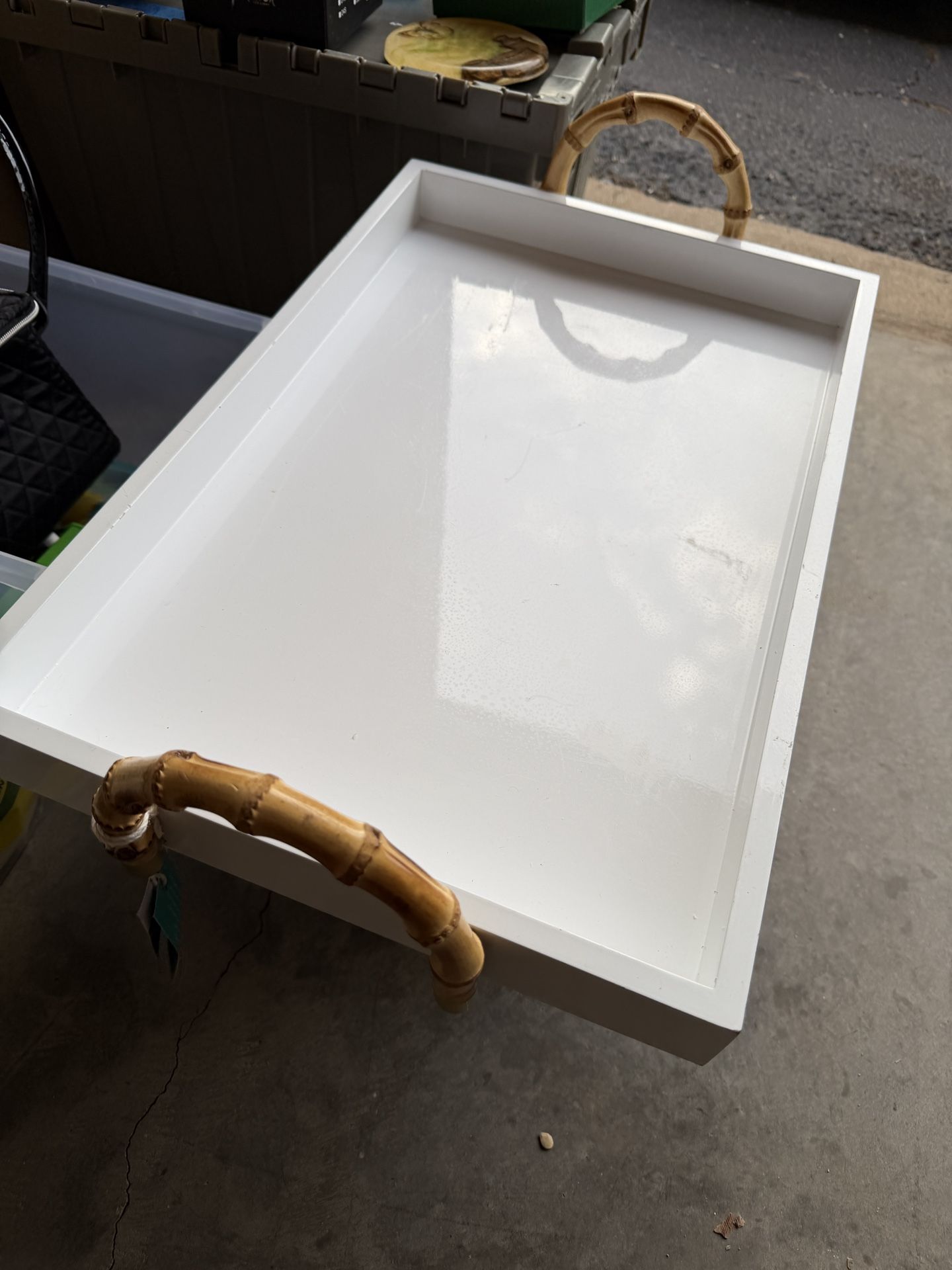 White Tray With Bamboo Handles