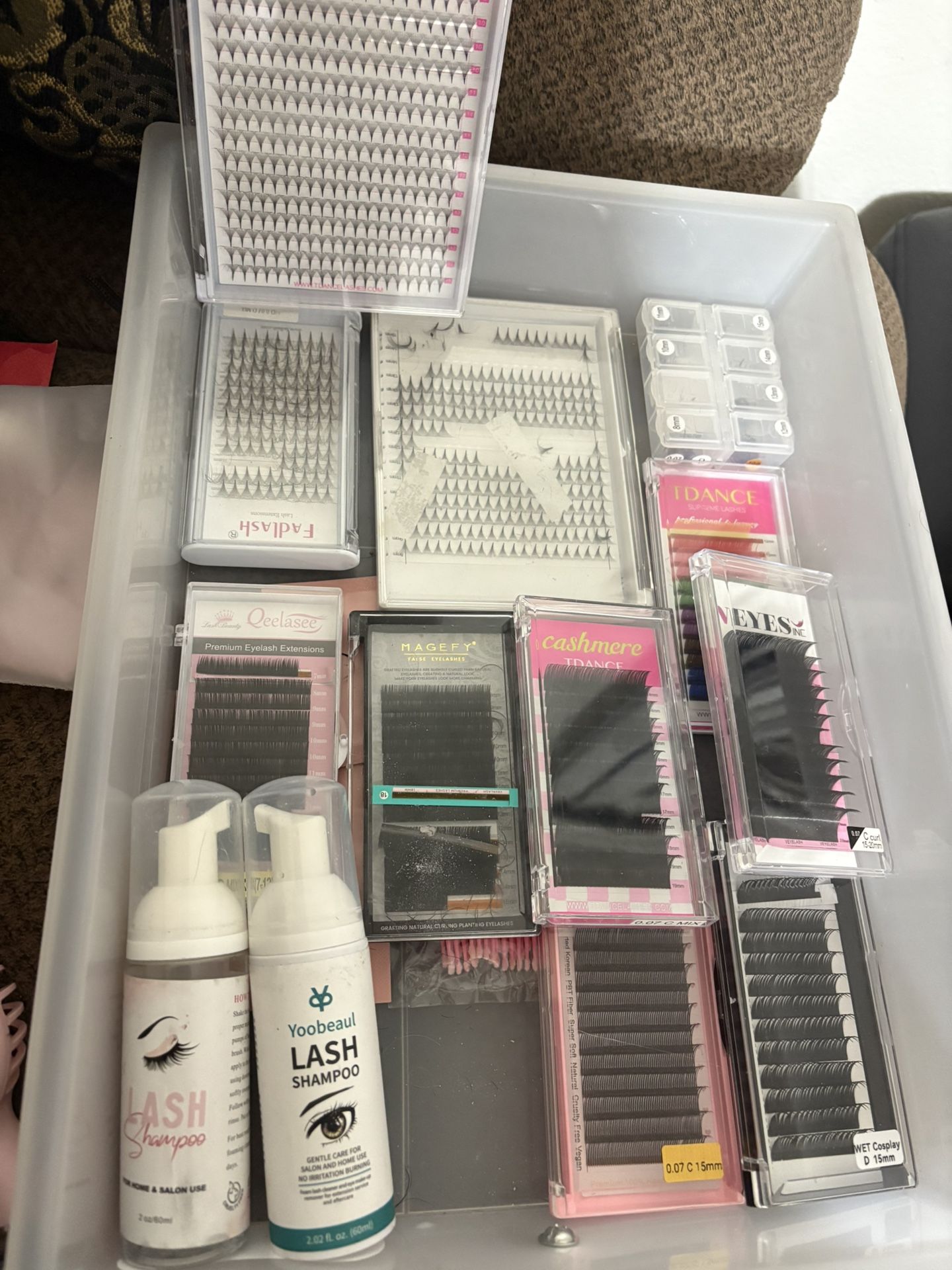 LASH SUPPLIES, trays, premade fans barely used, most new Bandejas de pestañas poco uso, mas que todo nuevas