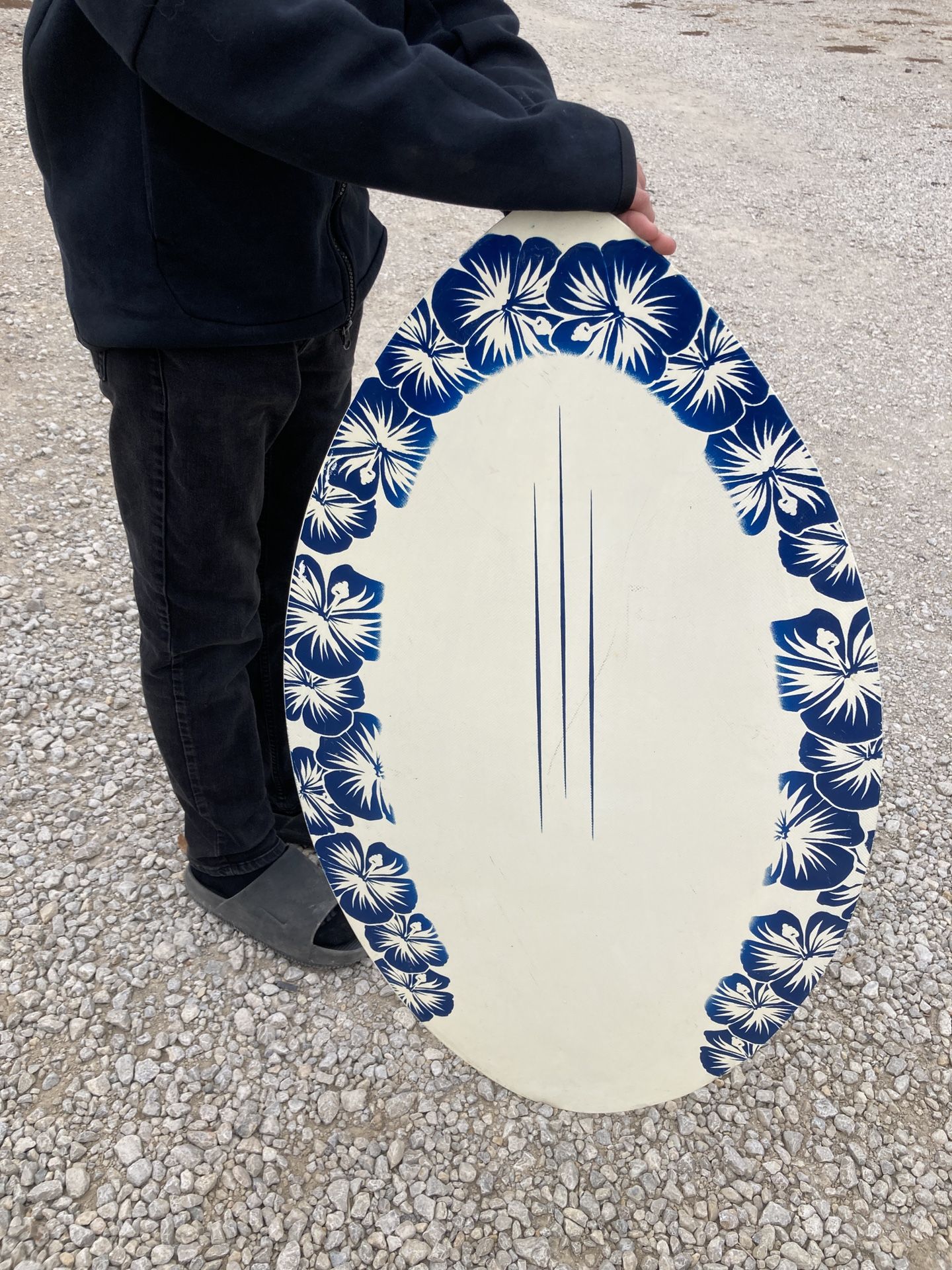 🌊 Triangle Co - Wood Skim Board Boogie Board 🏄 White with Blue Accents
