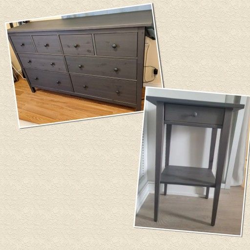 Selling this bundle in great condition for bedroom, we got it from ikea (hemnes). Dark Grey color both items. Dresser 8 drawers and 1 bed side 1 drawers, all of them workimg perfectly. Possible delivery for a FEE.