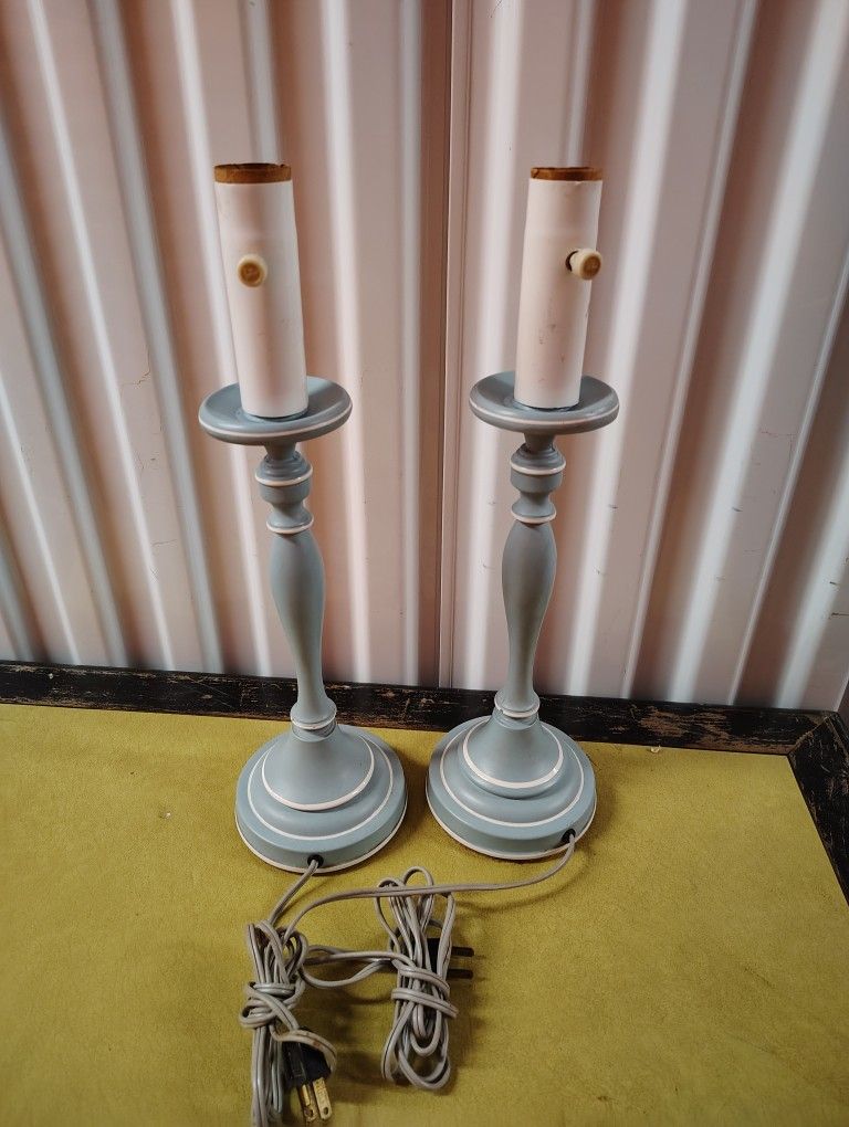 Pair Of Vintage Blue Candlestick Table Lamps