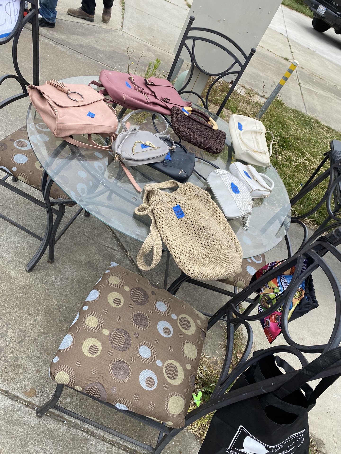 Glass Table with 4 metal chairs