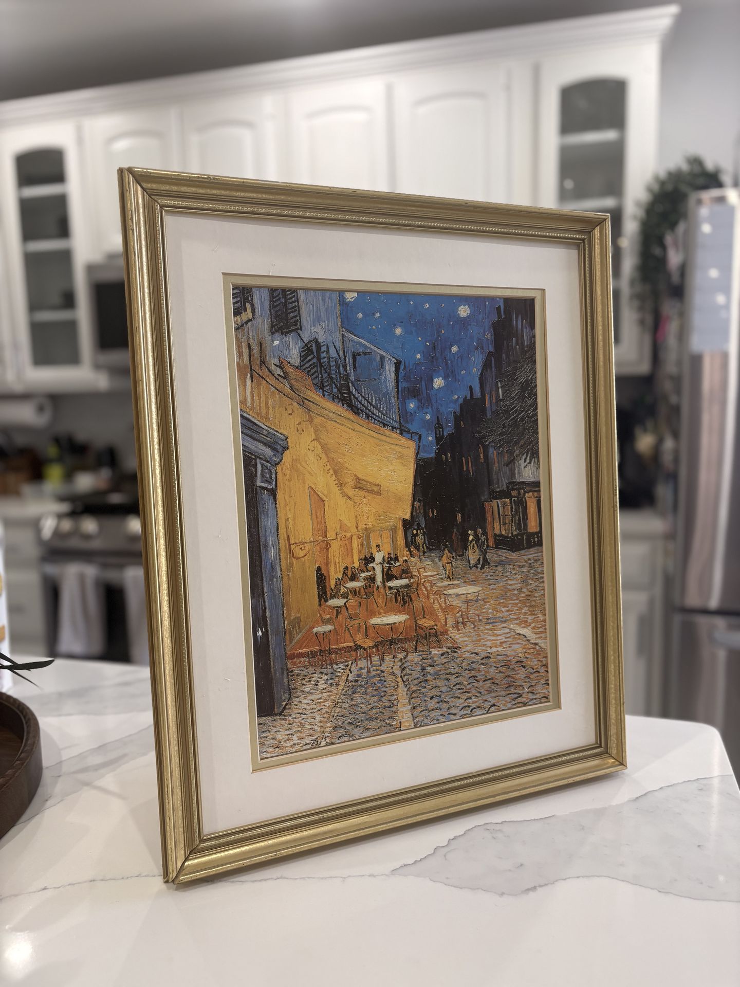 Vincent van Gogh Café Terrace at Night Framed Matted Print Gold Frame 16x14