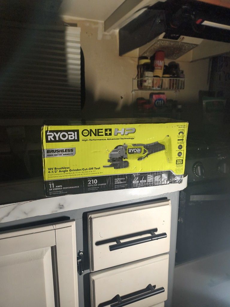 Battery angle grinder four and a half inch angle grinder good to have that works great brand new in the box I already have one myself