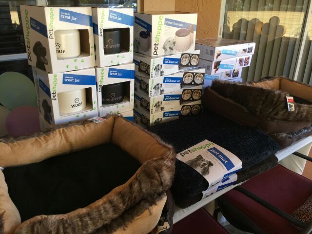 Pet supplies Dog Bowls, Beds, treat containers , steps..contact for availability and pricing all brand new