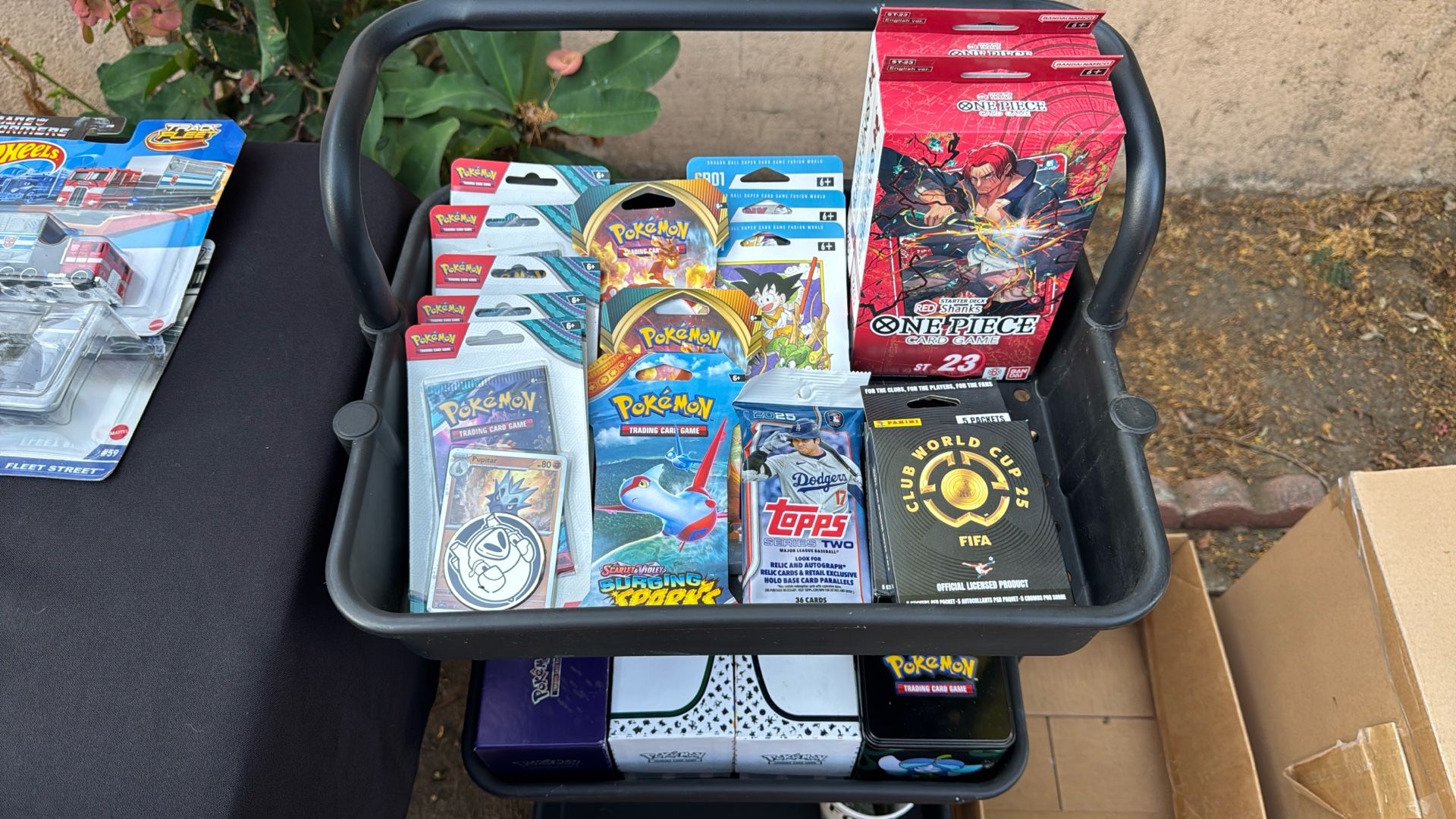 A lot of hotwheels and trading cards. Pokemon, one piece, sports cards/stickers. A lot of items are collectibles. Prices may very!! Thank you.