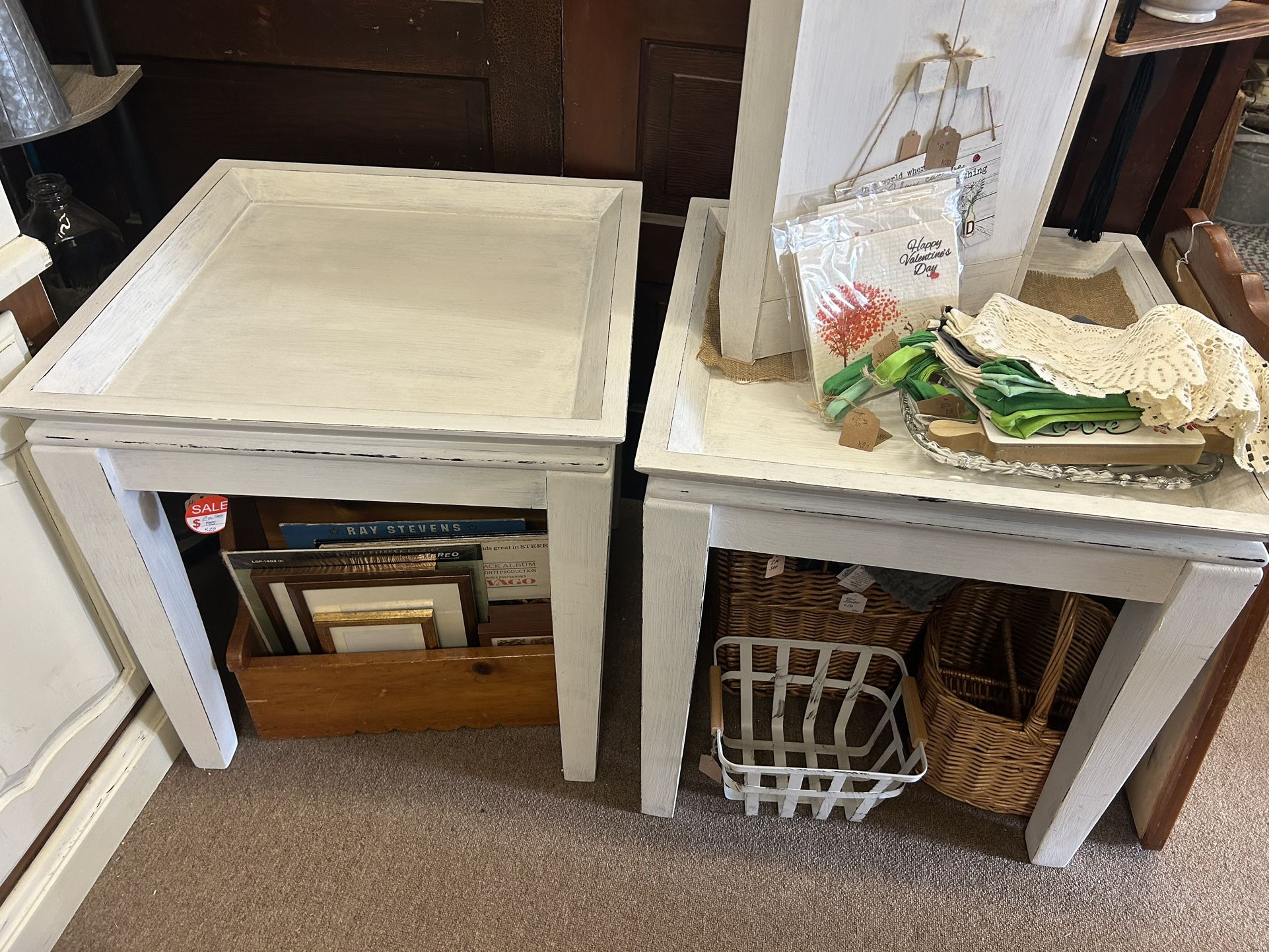 Set of 2 Vintage Hand Painted Large End Tables