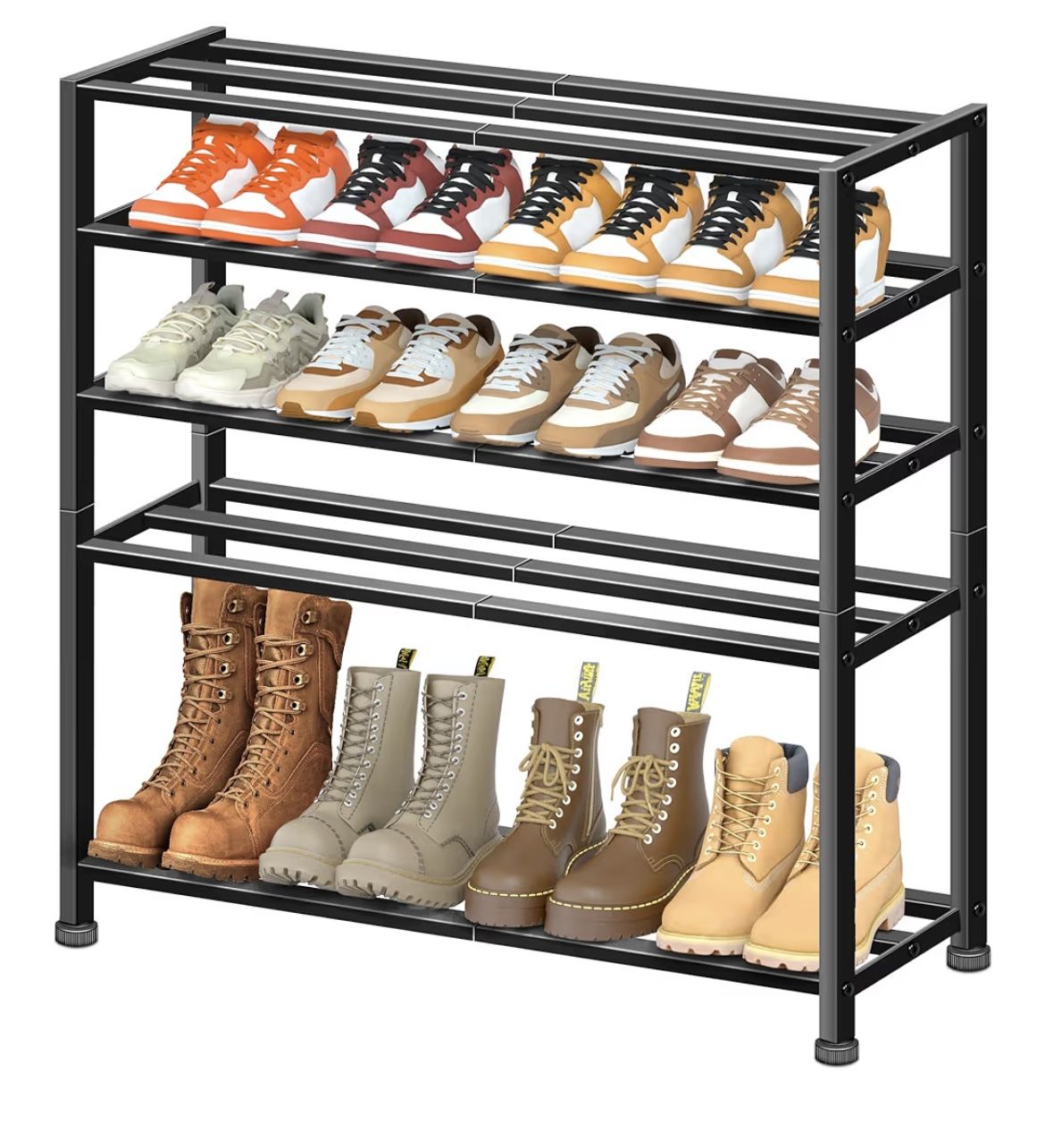 Heavy Duty 5-Tier Metal Shoe Rack - Holds 25 Pairs - Black (4 Available)