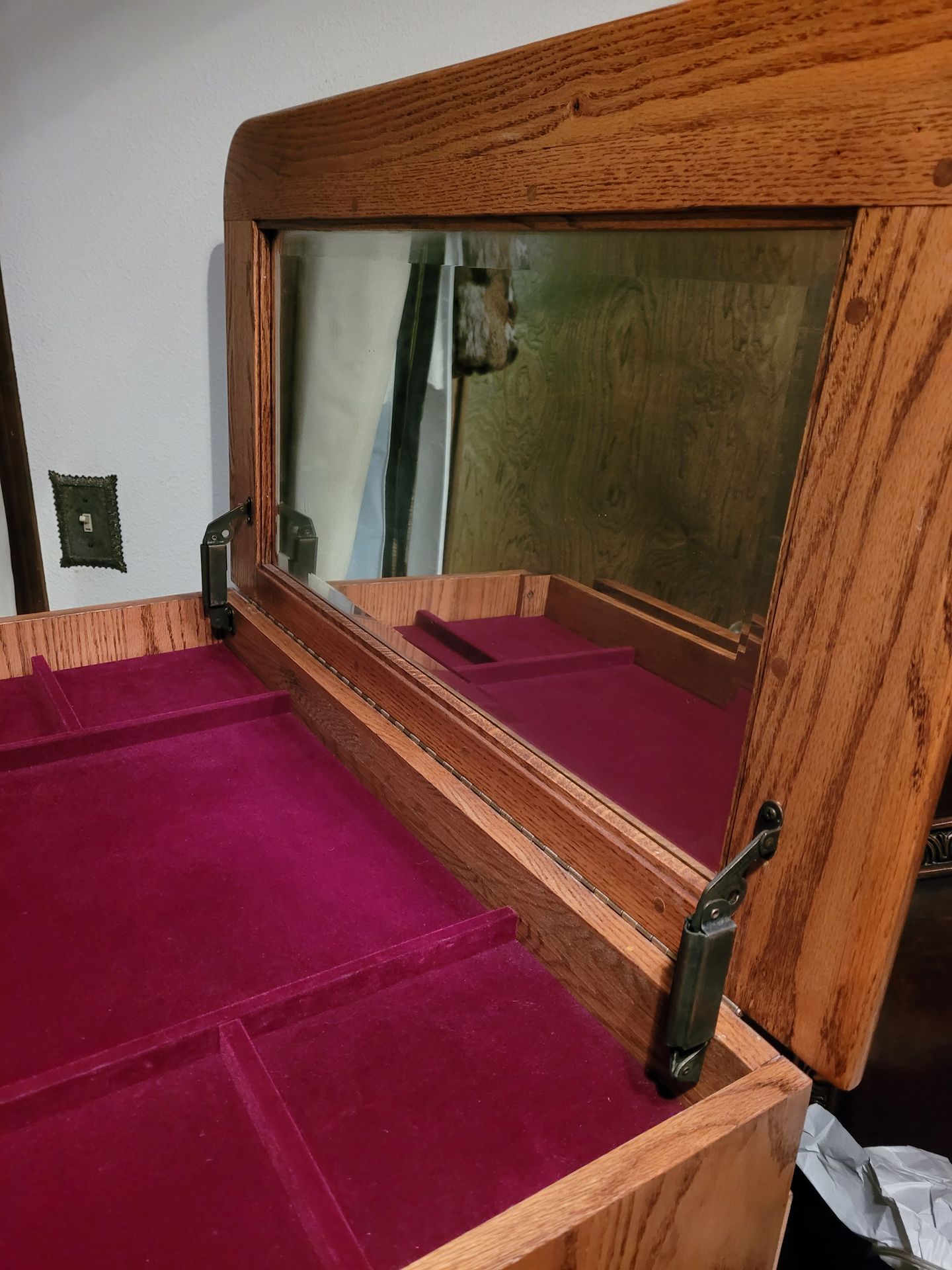Oak Chest Of Drawers Dresser 5 Drawers With Lift Top Velvet Lined Storage And Mirror Original Owner-Downsizing Local area pick up. Gresham, OR Cash sale-No apps
