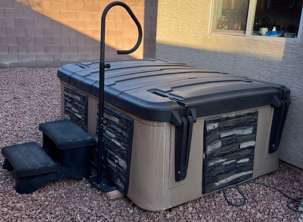 excellent condition new filter extra chemicals steps railing cover very convenient wired for 110 if you know anything about these spas you know that they're one of the best on the market very durable and built to last.