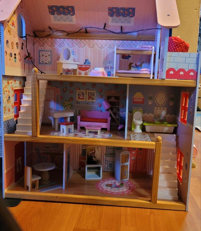 BEUTIFUL DOLLHOUSE, GREAT CONDITION, WITH ACCESSORIES, GREAT SUMMER ACTIVITY
