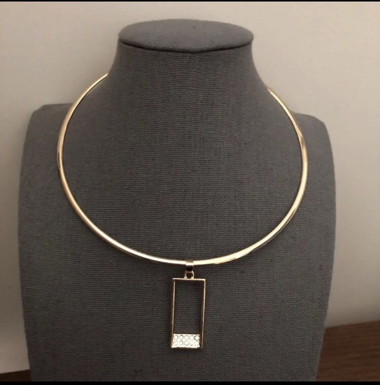 Gold plated collar necklace choker Rectangle pendant with crystal accents 16 inches with 2 inch extender Message if you would like to purchase multiple items from my store