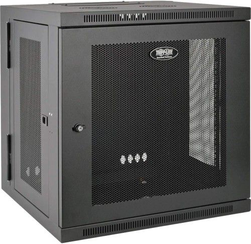 Brand new in box! Tripp Lite Color: Black Product Dimensions 29.5"D x 30"W x 28"H Size 12U Material Alloy Steel Compatible Devices: Server Network Rack Perfect for network wiring closets, retail locations, classrooms, back offices and other areas with limited floor space where you need equipment to be secure, organized and out of the way Houses EIA-standard 19 in. rack equipment in 12U of space up to 24.5 inches deep Maximum load capacity of 200 lb. Swings away from the wall to allow easy back-door access to equipment and cabling during installation and maintenance Rotate cabinet 180 Degree before mounting to open reversible doors left or right Side panels and doors lock securely to help prevent damage, tampering or theft Vented panels allow generous airflow that keeps equipment cool 5-Year Limited MFG Warranty Product specifications What's in the box SRW12USDP SmartRack 12U UPS-Depth Wall-Mount Rack Enclosure Cabinet^(20) M6 screws^(20) M6 cage nuts^(20) M6 washers^(20) 12-24 screws^(2) Keys^Owner’s manual Asking $250