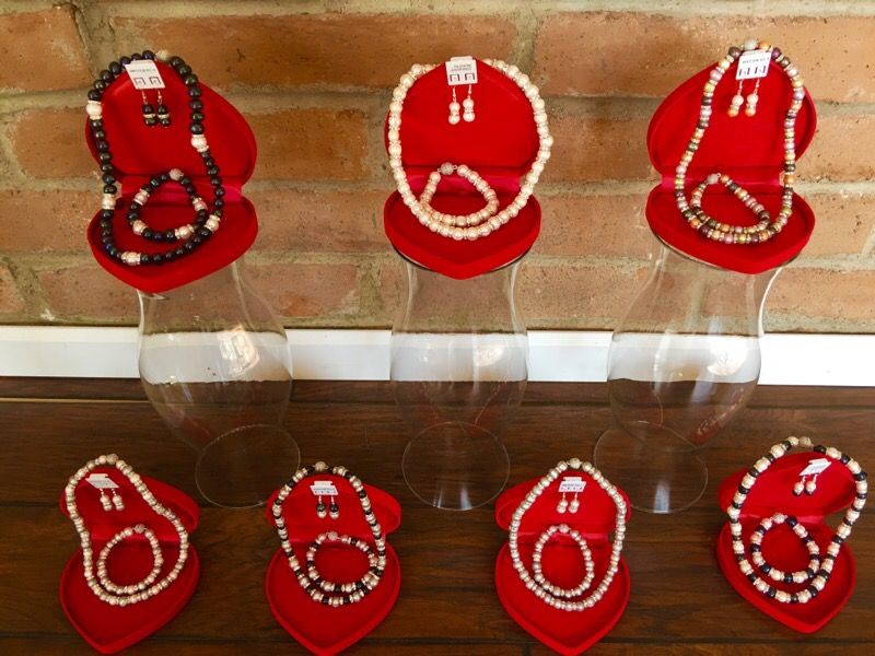 Natural freshwater pearls, I have different colors to choose from including black and silver and many combinations. These come in sets of three that include the necklace, bracelet, and earrings; with easy, no hassle, magnetic clasps!!