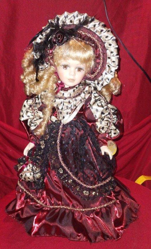 Collectors Choice Dan Dee Beautiful Porcelain Bisque Blonde Doll On Stand 15”