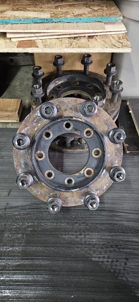 Set of 4 wheel adapters, steel not aluminum. Goes from ford 8x170mm to 8x275mm. I think they are 1/2in thick? Maybe 3/4in. I'll check later. $200