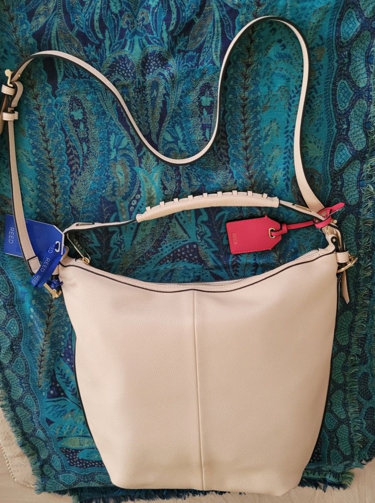 Shoulder strap can be removed & resized Warm cream color 15 by 13 by 6.5 bottom width in inches Two large inside pockets, 1 with zipper New with tags Retails at $89